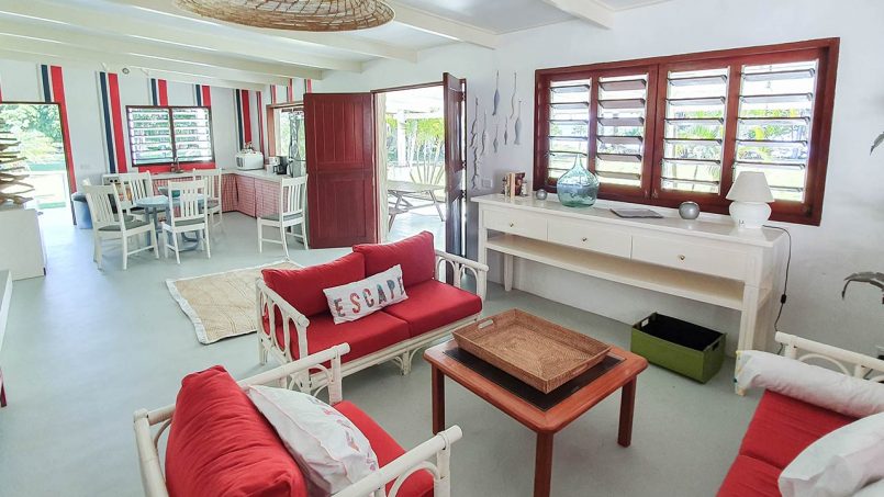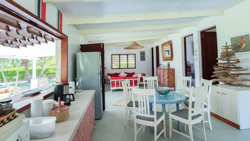 3 bedrooms and 2 bathrooms so there is plenty of space for everyone, the interiors are just wonderful, comfortable double beds in all rooms, tropical style bathrooms with fluffy towels. Lounge and dining area and a small but well equipped kitchen and we haven’t even started on the outside yet. Your own private beach, to swim snorkel or just relax. A safe rockpool to swim in is just there for you to enjoy. This little idyllic tropical paradise is yours to enjoy, but beware once there you have no choice but to forget about the outside world and just relax and enjoy the peaceful tranquility that is “Boho Chic by the Beach.”